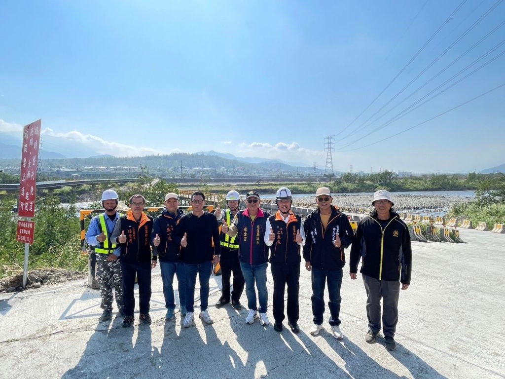 為了提升富里鄉東西向交通流暢性與道路安全,明里大橋臨時通行便道工程以及崙天大橋臨時通行便道工程,花蓮縣政府於今(21)日在鄉長江東成偕同本所秘書張一民、建設課長陳豐彥、花蓮縣議員詹金富及富里鄉民代表會主席葉家鴻下,將便道移交至本所管理後,隨即開放通行囉!此臨時便道的設置,旨在於明里大橋及崙天大橋改建期間,為鄉民、遊客及過往車輛提供一條安全、暢通的替代道路。