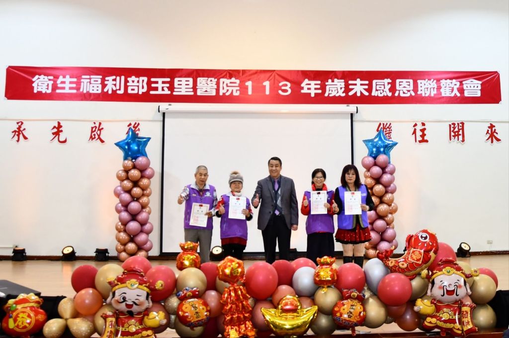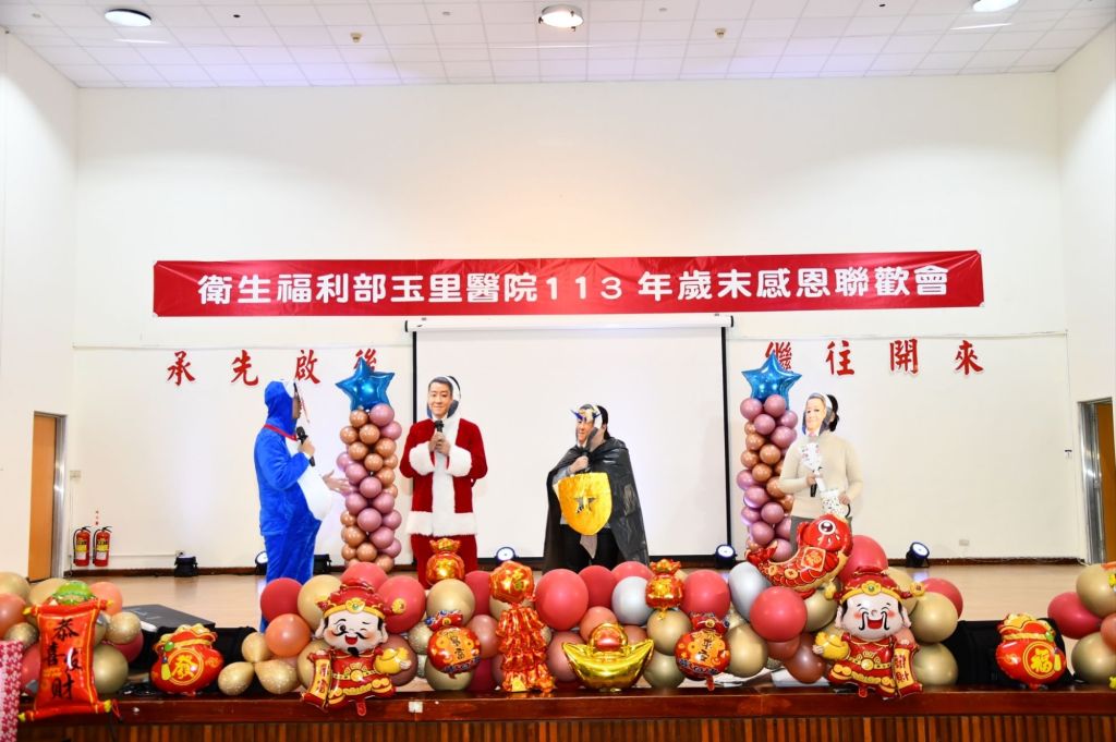 衛生福利部玉里醫院年度的聯歡晚會,現場氣氛熱烈、表演精彩紛呈,是全體長官與同仁交流與感恩的盛會。與會嘉賓有:衛福部心健司前司長陳快樂醫師、行政院東部聯合服務中心郭應義副執行長、花蓮縣政府南區服務中心楊裕民副主任、玉里鎮公所民政課長賴秀琴及張德倫機要、立法委員傅崐萁服務處潘俊霖主任、富里鄉衛生所林大慶主任等熱情參加。活動由頒發114年度志工隊隊務聘書及衛生福利部志願服務獎章揭開序幕,簡以嘉院長向無私奉獻的志工表達敬意、感謝志工的熱心服務,讓病患與家屬感受到溫暖與關懷,志工們的愛心與付出是醫院發展的重要力量。