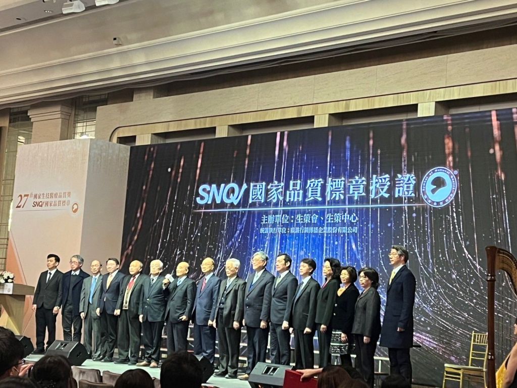 主持人在開場致辭中提到,賴清德總統特地發來賀電,對所有得獎單位的卓越表現致以祝賀,並期許大家以健康台灣為目標。接著SNQ國家品質標章總召陳維昭教授上台致詞,他強調,提升醫療品質與推動技術創新對社會整體發展的重要性,並肯定所有得獎者在各自領域中的傑出貢獻,勉勵大家繼續以「台灣第一、亞太第一、全球第一」為努力目標,讓台灣的生技醫療實力不斷攀升。頒獎環節中,經濟部長特地出席,親自頒發醫療暨保健器材類的銀獎與銅獎,表彰得獎單位在相關領域的創新與實踐成果。生策會創辦人王金平先生也親臨現場,為醫療週邊服務與產品類獎得主頒獎,充分展現對生技醫療產業的支持與期待。