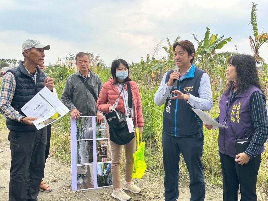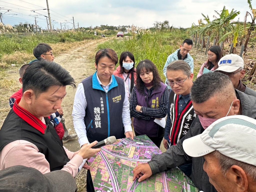 昨22日下午,縣議員魏嘉賢、李正文、韓林梅、簡智隆議員服務處主任賴國祥與台鐵、花蓮縣政府農業處以及地方公所的相關人員進行現場會勘,針對農地被鐵路包圍的問題進行討論,並初步規劃解決方向。魏議員也成立專案小組,推動具體改善措施,幫助農民早日擺脫困境。