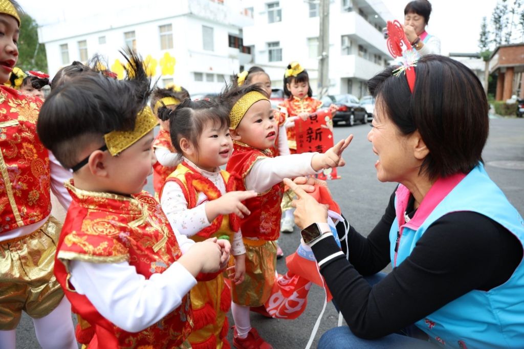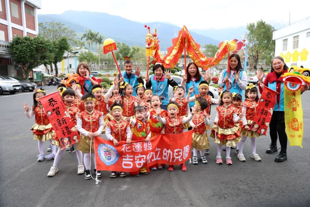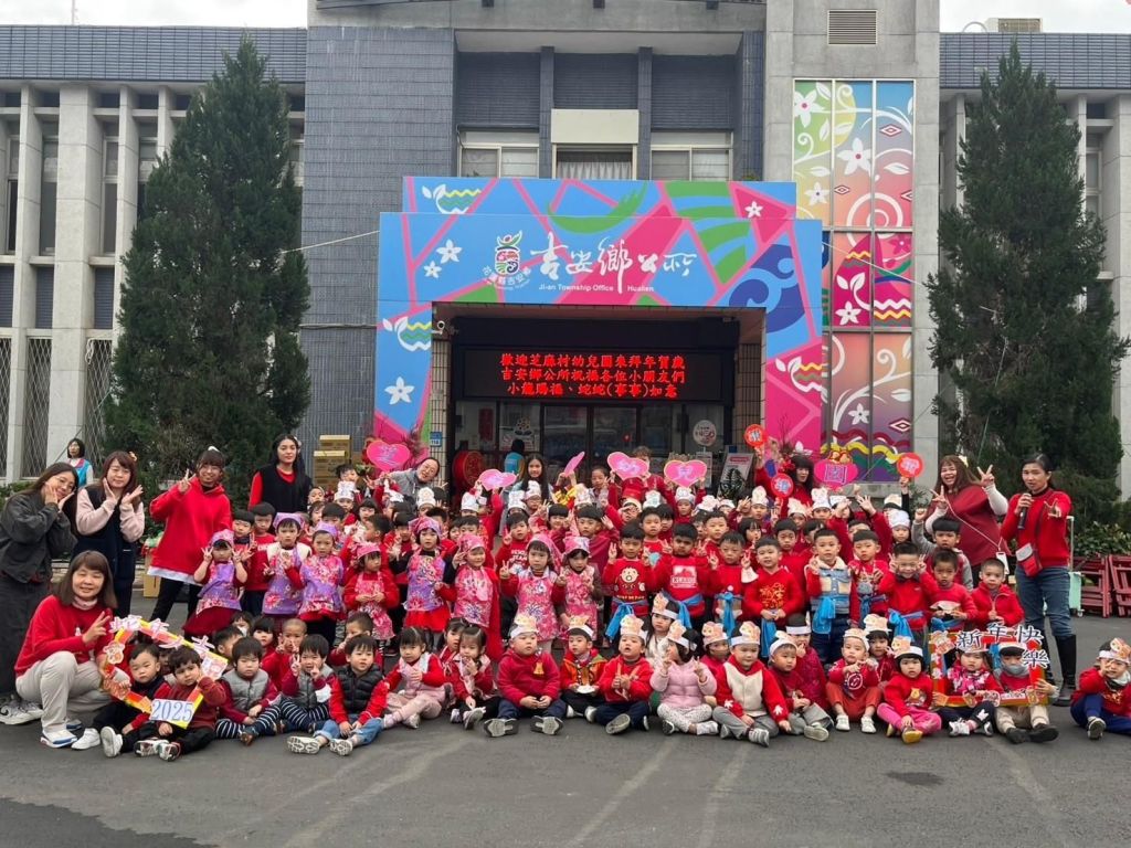 吉安鄉幼一直以來兼具社區保育型幼兒園和學習教育共構,自游淑貞鄉長上任後續提升專業幼教精進值,爭取全面教室硬體建設耐震補強安全加固,爭取「拉拉耙耕讀館」設置最先進優化的社區圖書館,一公園一遊戲場的社區讓親情增能。百餘位的小小孩在渾然忘我的快樂歡跳賀年聲中,逐一得到鄉長媽媽的乖乖獎勵,也在紅通通的孩子人群中傳來…新年快樂!大吉大利!祝福聲持續歡樂不斷…
