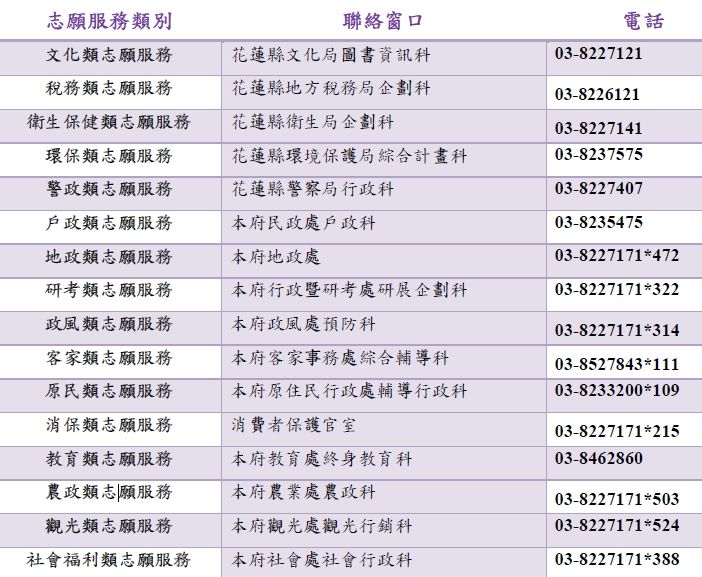 花蓮縣政府社會處表示,在本縣1萬175志工人次中,65歲以上高齡志工計4,766人次、佔比約46.85%,是志工行列的中堅力量,顯見本縣在邁入高齡社會的同時,也以高齡志工豐富的生活經驗與智慧,在各種志願服務中發揮著不可替代的作用;另一方面,青年志工(18至29歲)計401人次、佔比約3.94%,雖佔比不高,但代表著社會中新興的力量,具有活力與創新思維,對志願服務領域的發展起到了積極的推動作用。總結來看,高齡志工與青年志工各具特色,互為補充、攜手共進,青年志工帶來創新與活力、高齡志工則以其智慧與經驗穩定著志工服務根基,兩者的協同合作才是讓社會服務網絡更加緊密的支持力量。