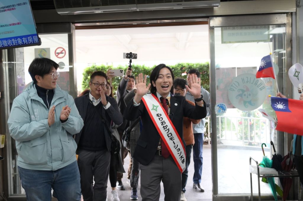 魏市長與河合郁人互動對談,氣氛輕鬆愉快。魏市長準備了花蓮有名的小籠包和珍珠奶茶,讓日方一行人大讚「歐伊喜!」。河合郁人的目光則被市長室放置的七龍珠海報吸引,表示自己與魏市長同為系列作品的粉絲,非常高興找到兩人的共通點。