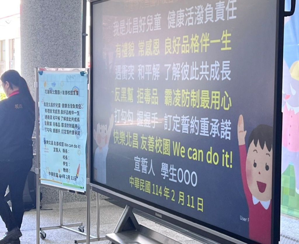 現場由北昌國小校長陳俊雄親自向全體師生宣導友善校園意涵,並配合教育部113學年度宣導主題:「拒絕兒少性剝削-不拍、不傳、不留、要求助」。縣府教育處表示,教育部明訂每學期第一週為「友善校園週」,花蓮縣各國中小於2月11日至2月17日規劃辦理友善校園多元化教育宣導及活動,期望建立學生正確的人生觀,營造友善校園環境。