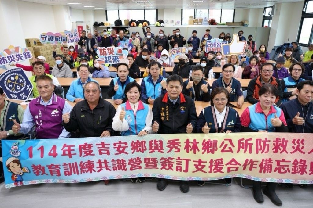「雙鄉女力」再展救災合作新量能!榮獲113年內政部頒發「花蓮縣0403地震應變得宜公所獎」的吉安鄉公所、秀林鄉公所,於今12日在花蓮縣防救災訓練中心,辦理防救災教育訓練共識營增進強韌社區有效自救作為訓練,更在消防局副局長李龍聖和百位鄉親見證下,隆重簽訂「災害防救相互支援協定書」,期有效掌握救災第一時間的運能,針對複合性災害防救災支援協定,以減低人命傷亡、提高迅速效能、發揮人道互助精神,克服地形地勢地理位置及交通障礙,有效進行搶救、安置收容、器材機具、防疫污染防治等人命救助合作,足見吉安、秀林兩鄉再次寫下花蓮縣十三鄉鎮市防災聯動合作的嶄新一頁。