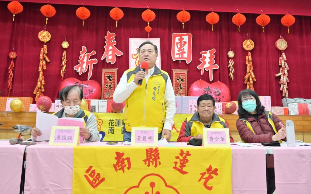 南區退休公教人員協會理事長黃夏明感謝國民黨立法院總召傅崐萁玉里服務處潘俊傑主任、縣議員鍾素政、吉安鄉公所游淑貞鄉長、玉里鎮公所詹秀蔥秘書、玉溪地區農會葉朝輝主任、東台灣記者協會楊金明理事長、吳新文代表及國武里陳玉蘭里長等來賓蒞臨現場給予新春祝福,並感謝各機關單位致贈摸彩品,提供參加者摸彩活動,增添熱鬧氣氛。大家新年見面又拿到紅包禮物,開心不已。高齡95歲的吳鸞聲由女兒陪同來會場,摸彩中了紅包,甚是高興不已,他說:大家都要健健康康,每年相約一起再來團拜唷!