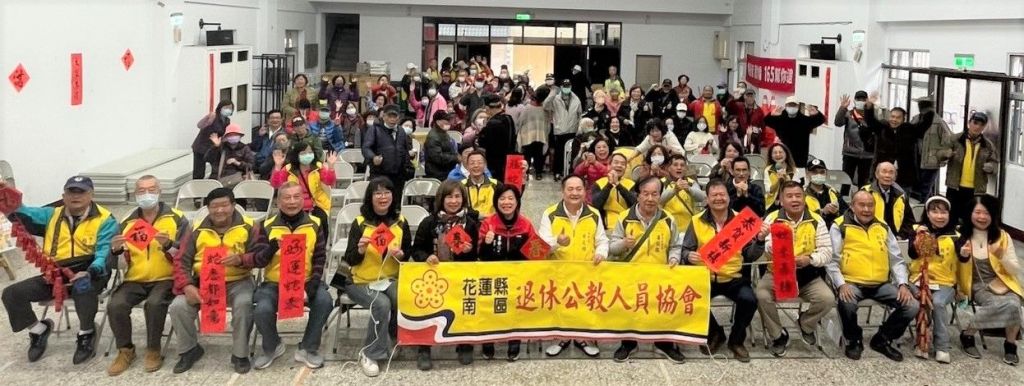 花蓮南區退休公教人員協會2月7日舉行「新春團拜」活動,一百五十餘位千歲團會員於元宵節前夕攜家帶眷相見歡,象徵團團圓圓,事事圓滿如意,身體健健康康,拱手互道新年快樂、大吉大利聲中揭開序幕,現場充滿熱鬧新春氛圍喜氣洋洋。