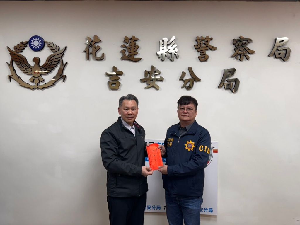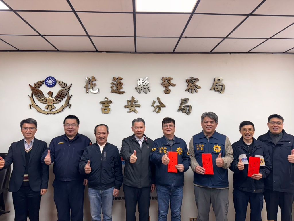 花蓮縣警察局局長陳百祿與花蓮縣警察之友會理事長林上哲今(12)日蒞臨吉安分局,特別頒發破案獎勵金,表揚吉安分局、刑大偵三隊及鑑識科在偵破重大殺人案件中的卓越貢獻,肯定同仁迅速查緝、發揮專業,讓犯罪嫌疑人順利落網,為社會伸張正義。