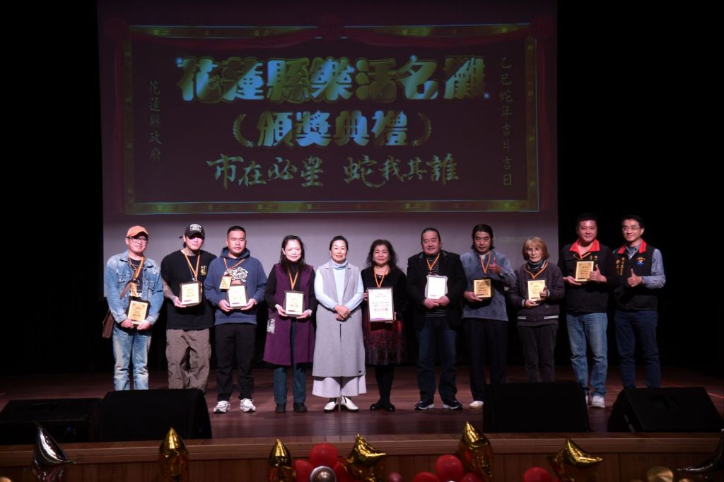 花蓮縣政府於今(13)日在花蓮縣客家文化會館演藝堂舉行花蓮縣樂活名攤「市在必星 蛇我其誰」頒獎典禮,表揚本縣榮獲經濟部「樂活名攤」認證的攤商,包含東大門夜市、重慶市場、中華市場、復興市場及中山市場,皆有攤商摘星。本次頒獎典禮不僅是肯定攤商、管委會與自治會的努力,也展現縣府對地方市場夜市與觀光發展的重視。