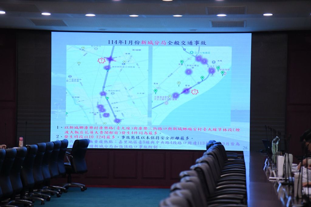 花蓮縣114年2月份道路安全聯席會報今(25)日於縣府大簡報室召開,由縣長徐榛蔚主持,副縣長顏新章、警察局長陳百祿、副局長林建佑及各相關單位列席討論,會中通過「112年度至113年度花蓮縣(風災)災後復建工程」之交通管制措施,提醒用路人多加留意。