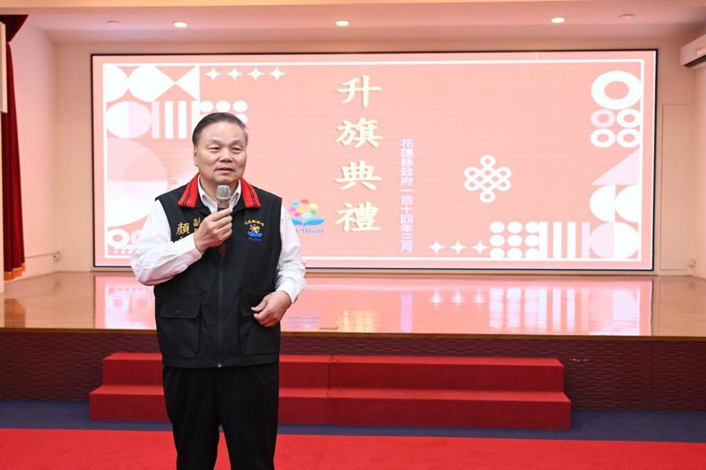 花蓮縣政府今(5)日上午於縣府大禮堂舉行三月份升旗典禮,由副縣長顏新章主持,並表揚縣府業務達人、圓夢團隊及綠色辦公局處。顏副縣長勉勵同仁秉持為民服務的精神,發揮公務最大效率及效能,一同持續為花蓮努力。