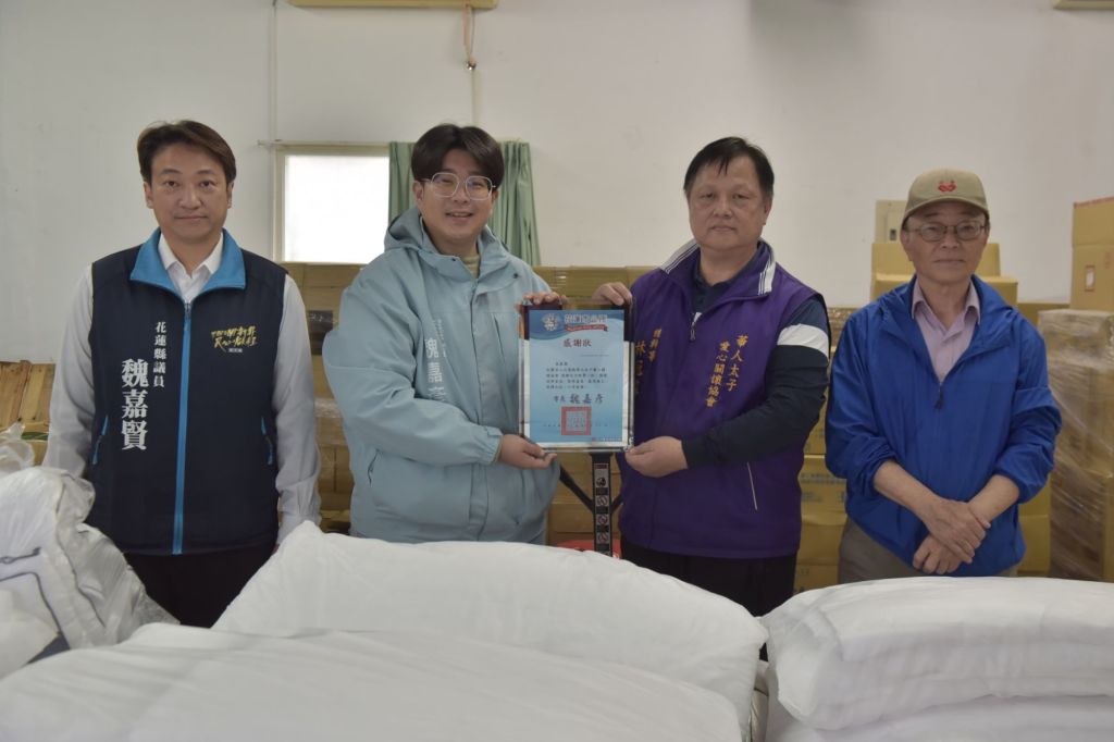 花蓮縣華人太子愛心關懷協會捐了200件的羽絨被給花蓮市公所,希望透過愛花蓮實物銀行的平台轉贈給有需要的弱勢家庭。花蓮市長魏嘉彥感謝協會的愛心,他表示,200件羽絨被將會妥善分配,並期盼社會大眾對弱勢族群給予更多關懷。