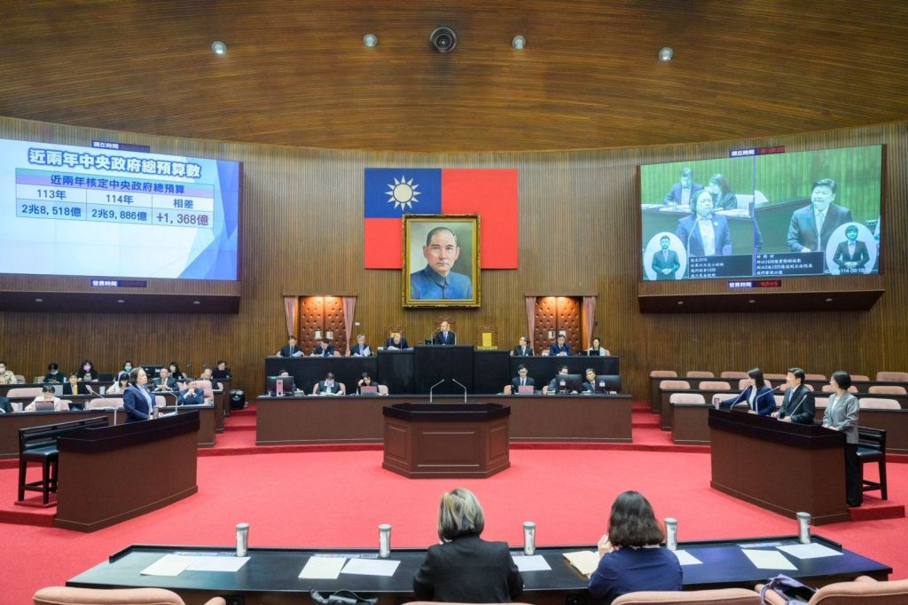 昨11日各部會首長均坦承114年度預算大幅增加後,今(12)日上午針對財劃法覆議案,國民黨立法院黨團總召傅崐萁數次詢問主計長,確認114年度總預算原編列3兆1325億元,刪除1439億元後,最後核定2兆9886億元,比去年增加1368億元。前三年中央政府歲計謄餘共一兆元,問依新版財劃法編列三千多億元補助地方,是否「合乎中華民國憲法?」主計長答是,問是否「落實行政地方自治?」主計長也答是。而對於台積電外移及美要求軍費佔GDP10%,傅崐萁提醒卓榮泰院長學學日本、加拿大、墨西哥要挺直腰桿,在台灣2300萬人未獲得國安保障前,不要當秦檜出賣台灣。