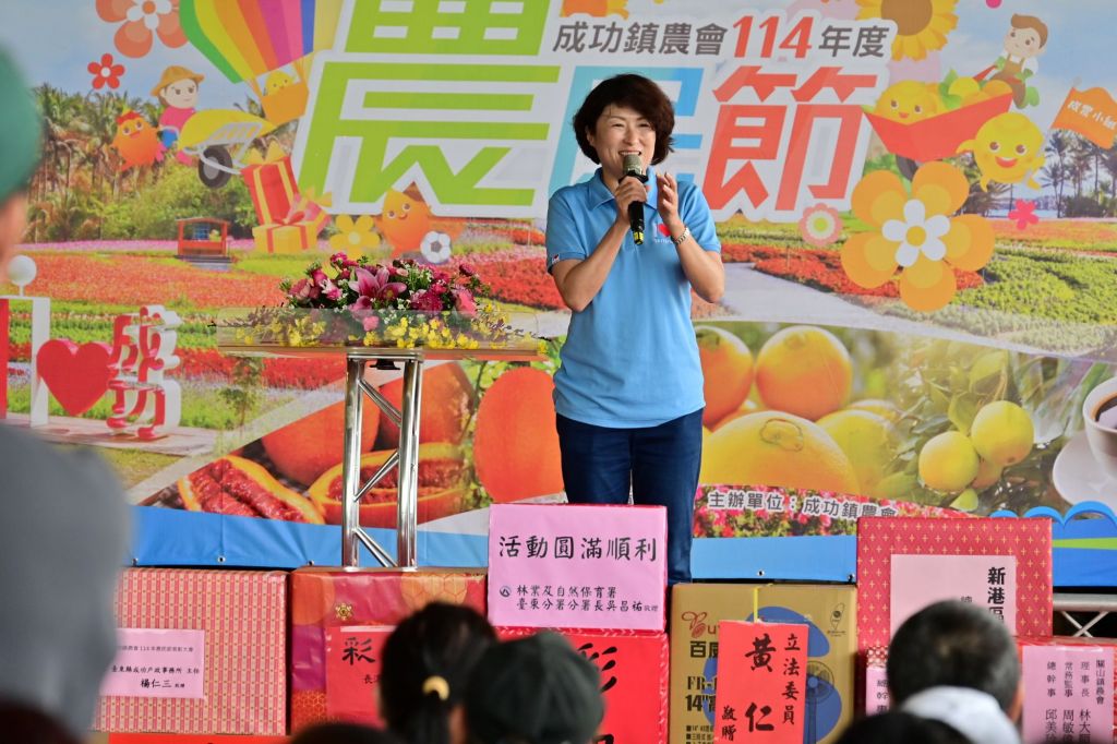 為鼓舞農民朋友一年辛勤的工作,成功鎮農會今(14)日在農特產品展售中心舉辦114年農民節表彰大會,表揚60位各領域的模範單位及人員。臺東縣長饒慶鈴除了肯定感謝相關人員對臺東縣農業的熱心奉獻外,也期盼在縣府團隊、農會與農民及所有產業鏈協力合作之下,持續為消費者生產更優質的農產品,並讓農業產值再創新高,饒慶鈴並允諾全力協助農產行銷,積極為農民促銷臺東優質水果等農特產品。