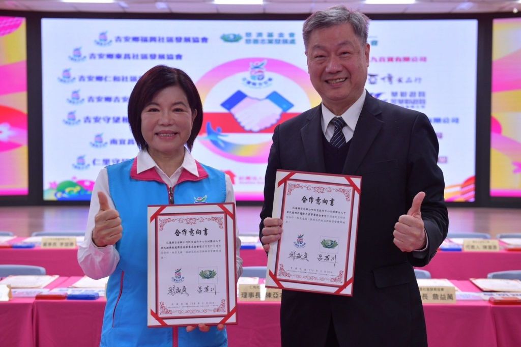 吉安鄉防災協作中心由游淑貞擔任主任,三位副主任分別為吉安巡守中隊副中隊長黃松生、福興社區發展協會理事長黃駿緯、仁和社區發展協會理事長陳亞本擔任。中心內設規劃組、作業組、後勤支援組及行政關懷組,負責應變規劃、物資調配等。游淑貞於儀式中頒發聘書,感謝大家共同肩負守護鄉里責任,並與志願組織和企業代表簽署防災合作意向書,象徵政府與民間攜手合作,確保資源充足、應變高效。