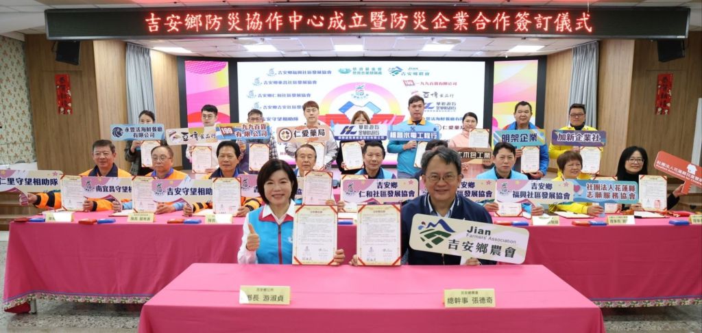 吉安鄉公所為提升防災應變能力,於今18日正式成立「吉安鄉防災協作中心」,並舉行揭牌典禮。鄉公所結合學界與民間能量,整合十個志願組織163名志工與十家企業,攜手打造高效防災體系,期望透過公私協力,讓防災意識深入社區,共同守護鄉親安全。揭牌儀式由鄉長游淑貞主持,與花蓮縣消防局長吳兆遠,共同攜手慈濟基金會、東華大學防災研究團隊、在地志願組織團體以及防災企業代表,見證這場重要時刻。