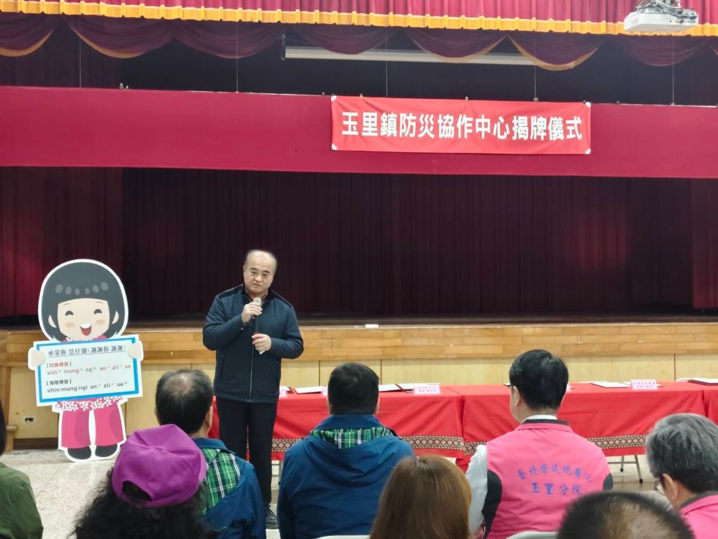 花蓮縣玉里鎮今20日下午13時30分在玉里鎮中正堂舉行防災協作中心成立典禮,現場邀請多位來賓蒞臨觀禮指導,共同見證這一重要時刻。此次活動並與玉溪地區農會、慈濟基金會玉里和氣組、臺北榮民總醫院玉里分院、衛生福利部玉里醫院、合庭聯合超商股份有限公司、杏林中醫診所、啟模守望相助隊等單位簽訂合作備忘錄及意向書,正式建立起多方協作的防災網絡。現場蒞臨的許多機關單位嘉賓也向本所提出許多寶貴意見,希望藉由這次活動,能號召更多民間力量加入防災行列,一起做好防災工作,讓玉里更美好。