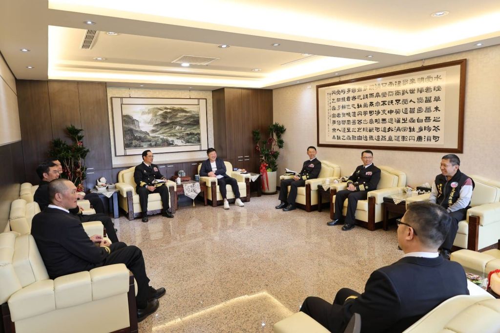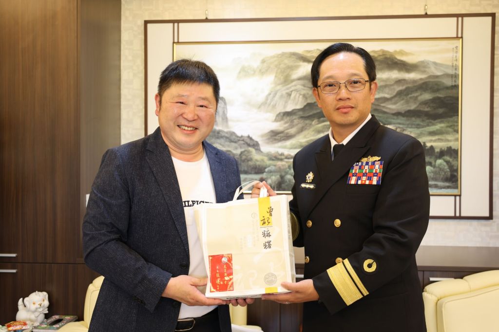 今21日下午,海軍敦睦遠航訓練支隊長劉岱瑞少將率領支隊政戰主任劉志建上校、磐石艦長林銘軒上校、武昌艦長王家倫上校、鄭和艦長鄭明忠上校及隨艦軍官拜會花蓮縣議會議長張峻,張議長特別慰勞200盒花蓮在地知名伴手禮—曾記麻糬,為海軍弟兄加油打氣,展現軍民一心。劉少將向張峻議長說明此行的任務目的,張峻議長也介紹自己義務役時為海軍,曾在艦艇上保家衛國,此話一出,立刻拉近彼此的距離,並劉少將等人於議長室相談甚歡,劉少將特別感謝花蓮鄉親和張峻議長對國軍的支持。