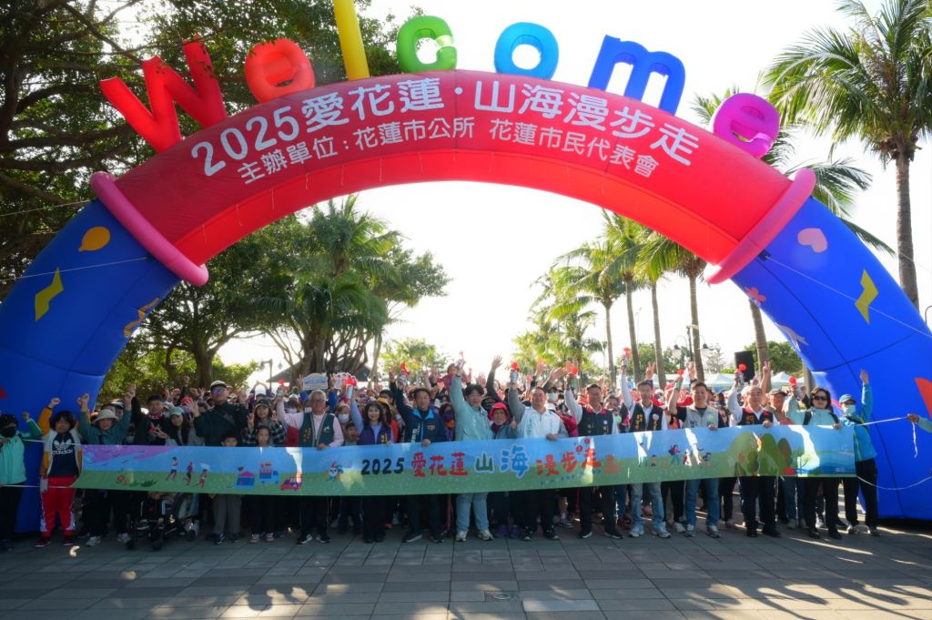 花蓮市公所舉辦「2025愛花蓮‧山海漫步走」活動,今(22)日在太平洋公園曙光廣場登場,吸引約三千位民眾熱情響應,魏嘉彥市長率領市公所團隊與花蓮鄉親共享健走的樂趣。魏市長表示,很開心看到這麼多花蓮朋友參與山海漫步走,一同漫步在北濱沿岸的美景,希望大家在活動中能多欣賞海岸風光,在初春的日子裡留下美好的回憶。