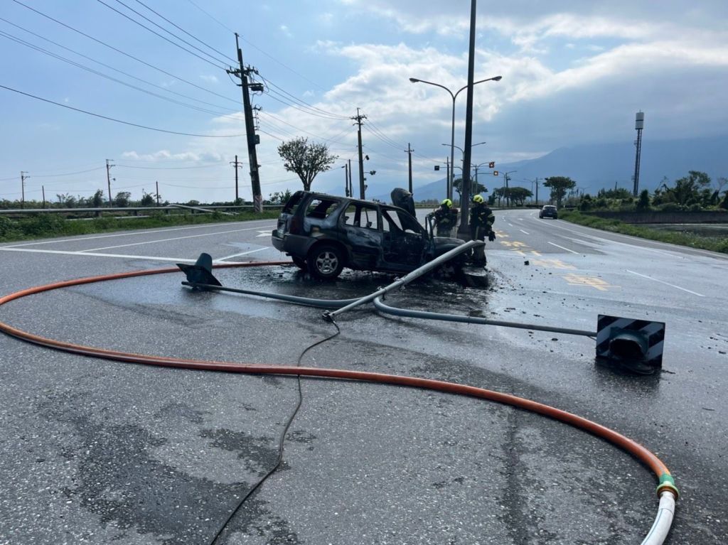 吉安分局豐田派出所於昨22日下午13時許接獲報案,在壽豐鄉臺11丙線15.4K處有交通事故,並且車輛因撞擊起火燃燒,現場濃煙竄出。警消獲報後迅速趕赴現場,消防人員立即進行滅火,火勢於短時間內撲滅,駕駛也在撞擊後隨即自行脫困,並由救護車送往醫院檢查,頭部有輕微腫脹,意識清楚,無生命危險。