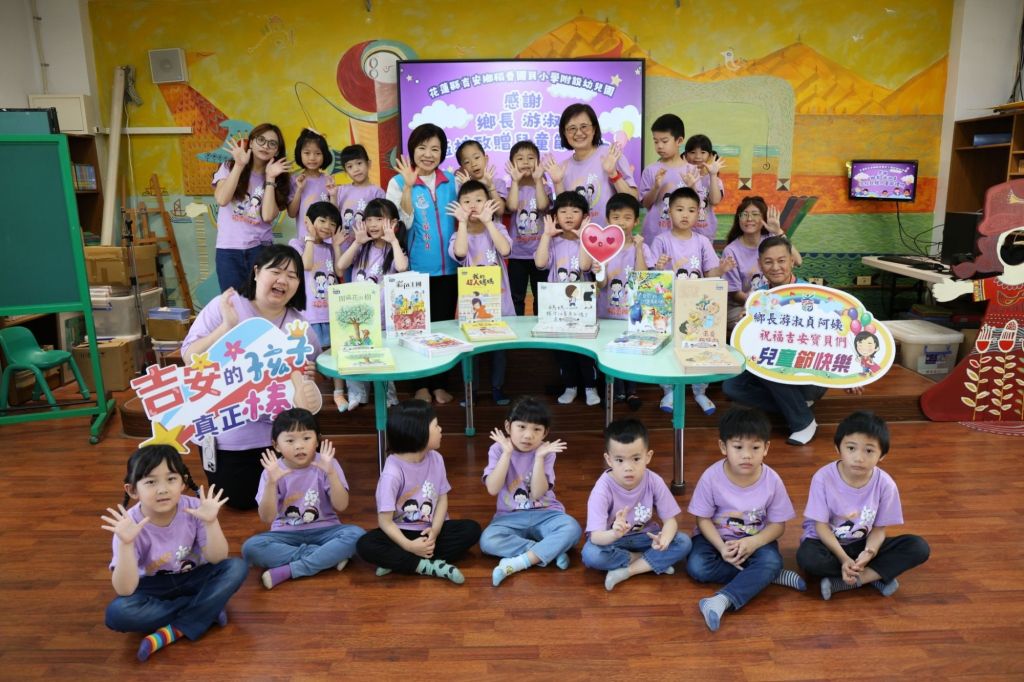 一向重視教育的鄉長游淑貞與吉安鄉公所團隊,特別到訪稻香國小附幼、光華國小附幼、欣怡幼兒園及吉安仁里郵局職場互助教保服務中心等公、私立幼兒園,贈送兒童優良繪本書給全鄉的幼兒園小寶貝們,提前陪伴孩子歡度兒童節,而朝氣蓬勃的孩子們則用可愛稚嫩的童音歡呼「鄉長阿姨」到來,展現健康寶寶的活力熱情。
