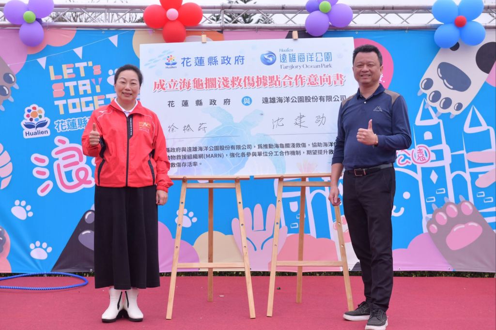 縣長徐榛蔚表示,縣府關懷動物權益,由於花蓮縣海岸線綿長約有119公里,為了體現對於動物的重視及尊重生命,期許和各界跨域合作推動動物課題,縣府將攜手與遠雄海洋公園簽訂合作意向成立「海龜擱淺救傷據點」,期望提升擴大海洋保育類野生動物救援和照護,宣示公私部門合作保護動物的決心。
