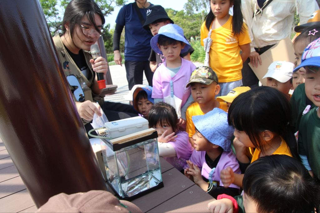 今日啟用典禮現場,小鯨魚幼兒園與小藍鯨幼兒園全園師生到場參與,共同歡慶工程圓滿完成。此次改造新增烏頭翁遊戲塔、成人體健設施、林下體驗空間等多元互動場域,提升家庭友善休閒機能;另,也注重生態保育措施,完成蓮花池畔景觀再造、入口意象美化與動線重整,增強場域辨識度與遊憩便利性,這次的改造,特別強調「生態共融、環境友善」的設計理念,不只是硬體升級,更是理念的深化。