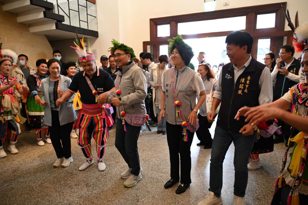 侯友宜與新北市府團隊首站參訪了臺東表演藝術創生基地「就藝會」,饒慶鈴縣長及縣府團隊以阿美族傳統儀式,來歡迎侯市長加入大馬蘭部落家族,並致贈情人袋及花環,縣長表示,舊議會為著名建築師呂阿玉先生設計,103年登錄為歷史建築,縣府近年透過調查研究與修復計畫,於112年完成修繕,打造具有臺東特色的藝文空間,展現對於文化資產保存與活化的重視。未來希望與新北市政府共同策劃文化活動、加強藝術家的交流與作品展覽,讓兩地的表演藝術團隊擁有更多發展機會,也歡迎新北藝術家到此駐村創作。