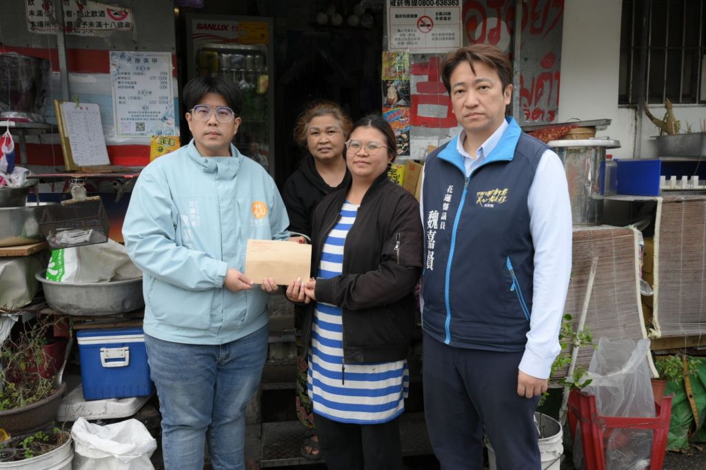 花蓮市長魏嘉彥日前前往新興路,親自關心一戶因父親猝逝陷入經濟困境的家庭,並代表市公所發放急難救助金,表達關懷與支持,魏市長表示,市公所會持續關注弱勢家庭的生活狀況,協助他們穩定生活、重拾信心。縣議員魏嘉賢也到場慰問,盼能協助這戶家庭度過難關。