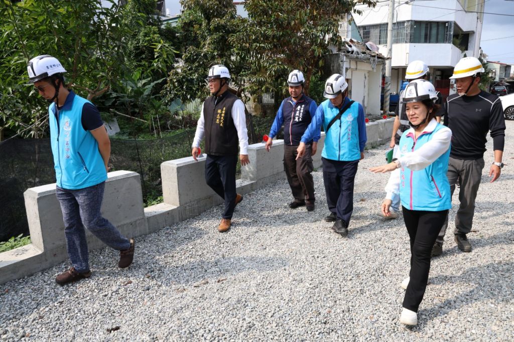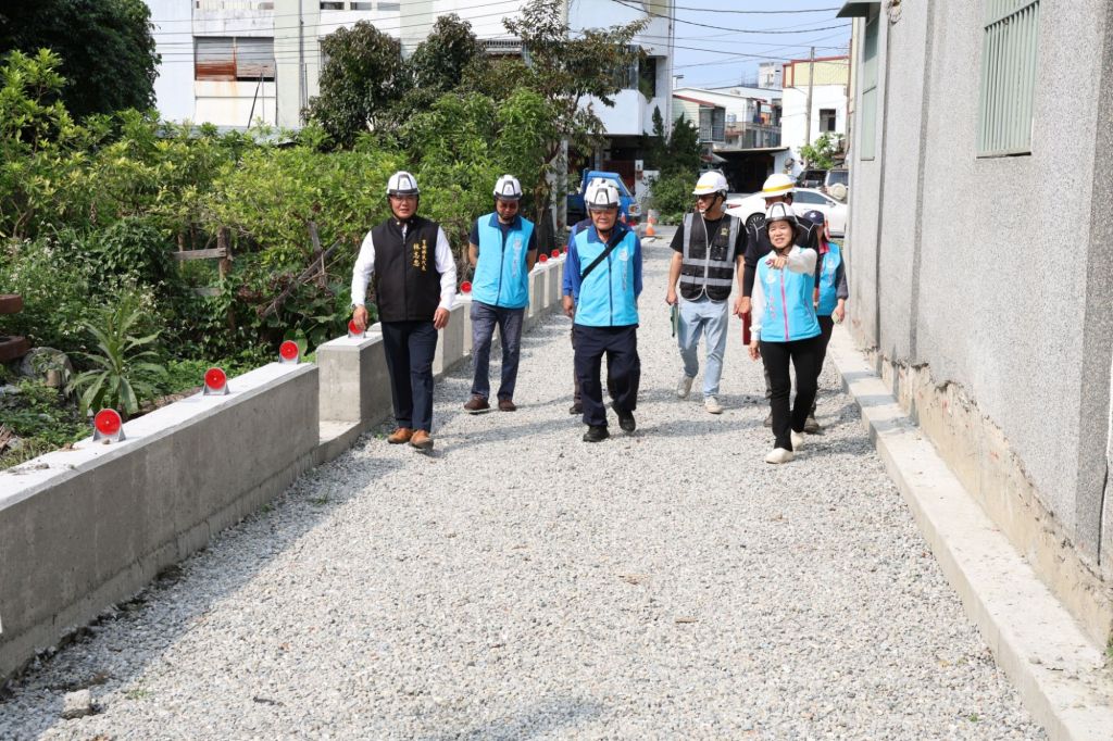 參與現勘代表們關切鄰近居民出入安居狀況,多次叮嚀施工廠商與鄉公所團隊,執行任務的安全防護和橫向聯繫溝通執行,其中工程部份因需配合台電管線遷移而暫停,亦盼做好溝通默契縮短工期,早日完成通車的期待。村長陳振興感謝公所用心和游淑貞鄉長傾聽民意到位建設,因為這條道路是數十年的期待,自民國69年的地方建設規劃並徵收土地至今,在游鄉長任內終完成佔用拆遷手續,雖然這條路不是主要幹道,卻讓民眾生活安全便捷,尤其鄰近的年長鄉親從南昌路步行到活動中心參加文健站、福氣站活動,就可以不用再繞遠路通行。