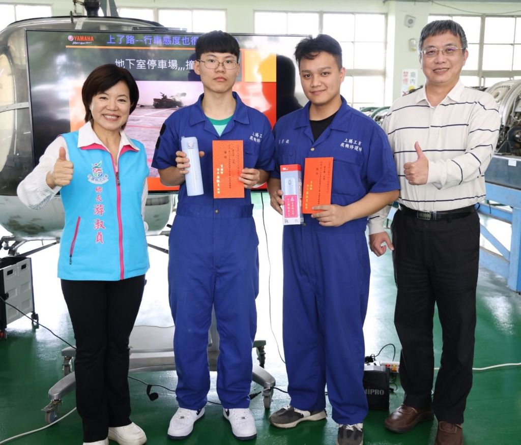 鄉長游淑貞恭賀兩位同學的傑出表現,同時讚揚校方教學用心,並表示上騰工商是東部在地唯一設有飛航專業技職科系的學校,學生們能在全國競賽中取得優異成績,不僅是學校的光榮,更是吉安的驕傲。她期許孩子們持續努力、堅持夢想!