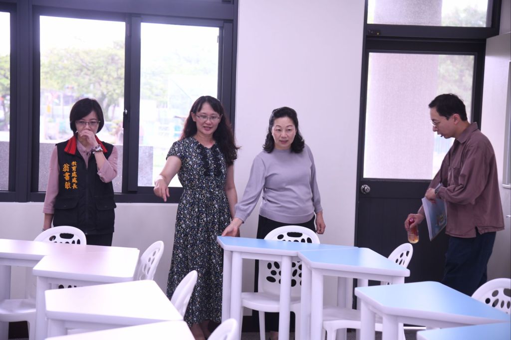 徐縣長隨校方檢視南側校舍相關設施,所到之處,學生無不熱情向縣長阿姨問好,徐縣長也親切關心師生們在教材及設施的使用情況。此次北濱國小校舍內裝升級包括美勞教學設備、電子鋼琴等藝術教育所需設施,還增加了智慧黑白板系統、空調設備以及新型討論課桌椅等,期望能讓學生在全新教室空間裡探尋藝能課程的奧秘,也藉以激發學生創造力和學習熱情,提升學習品質。