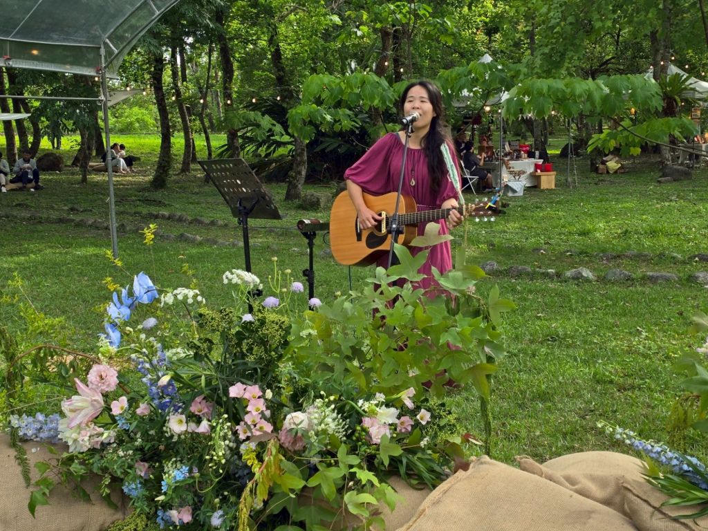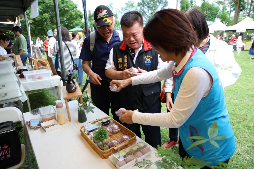 吉安鄉公所與希柏市集有多次合作默契,無論是歷年在好客藝術村、國慶創意市集或是好森活希柏市集…乃至這次的桐花祭活動,豐富吃喝玩樂及盆栽花卉的多樣選擇,讓每個攤位前都聚滿排隊人潮,有的人對於「南寧攤位」賣的沒有魚的魚湯感到好奇不已,有的直誇吉安四寶新鮮芋頭現做芋頭糕香濃好吃,也有人選購寵物甜點為可愛萌寵加菜…人人臉上洋溢笑容、輕鬆愜意,手上掛著滿滿的「戰利品」,草地上人們或坐或躺欣賞節目好不愜意,另外,還有不少外國朋友勇敢加入客語闖關,為小朋友拿獎勵品,作為人生挑戰趣味。
