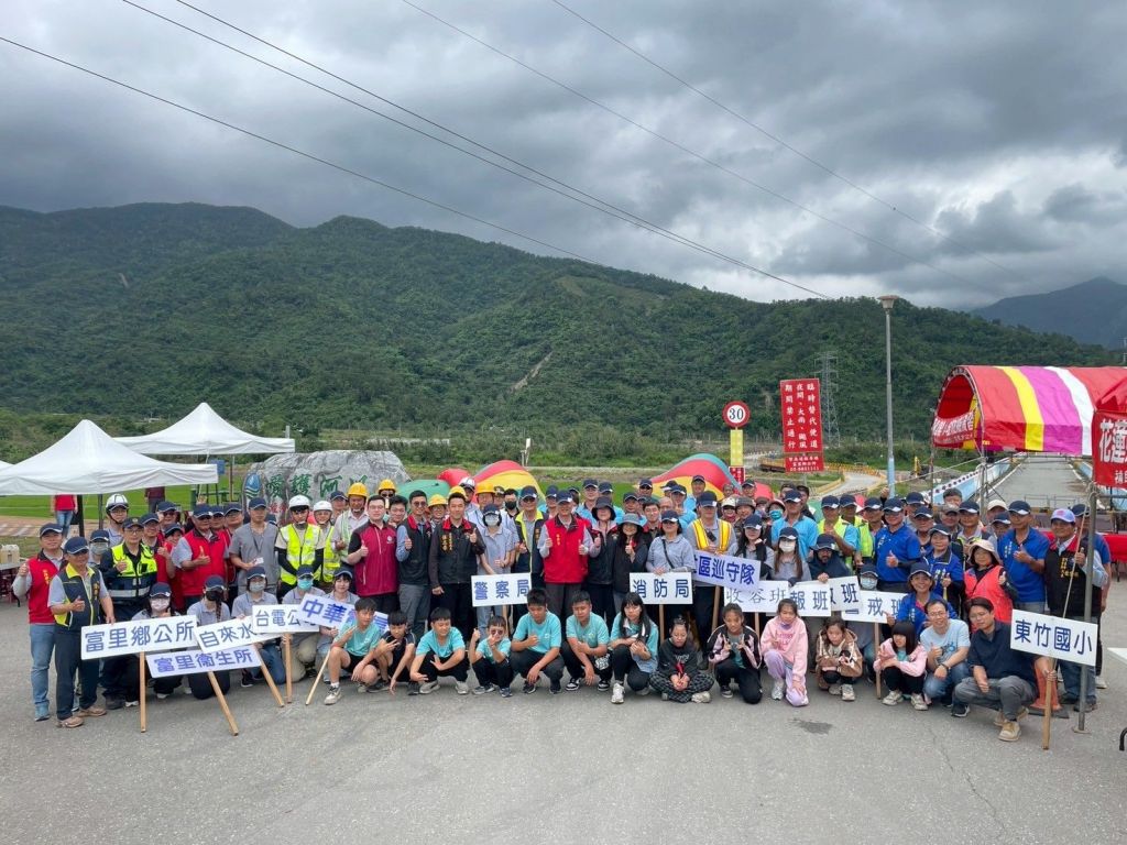 富里鄉為花蓮縣最南端的鄉鎮,全鄉面積達176.37平方公里為一縱谷地形,同時屬秀姑巒溪河系,縱谷向北流至瑞穗等地,自每年5月起水量開始豐沛,在7、8月時達到最豐,此處便是重要的防汛要地,而近年面對極端氣候,災害威脅更鉅。為此,本鄉嚴陣以待,本次假想設定13種演練項目狀況,從防災機制宣導、通知,災時的災害應變中心成立、收容、撤離、搶救到災後復原,形成完整一套的演練過程。本次演練亮點為與社區巡守隊的公私協力,藉由公部門及私部門間的合作無間,增加有效提升搶救防災及救災的效率,爭取黃金救援時間。