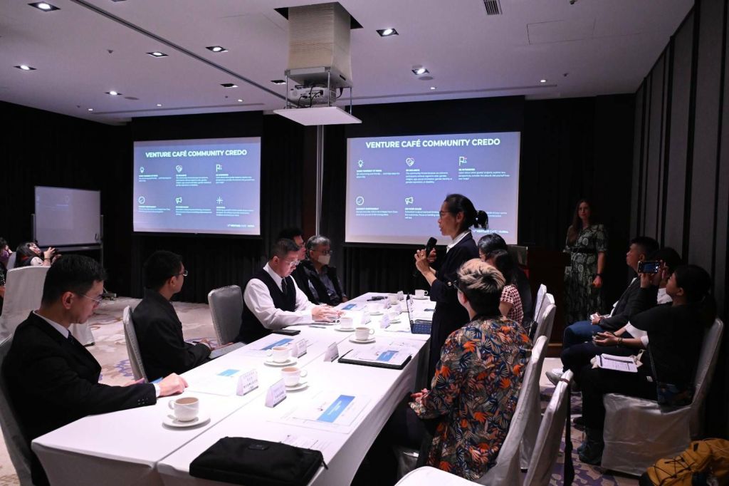 Venture Café自2009年於波士頓劍橋創新中心成立以來,已成為全球創新生態的先驅之一,目前拓展至全球 13 座城市,累積超過 55 萬名創業者、投資人及產業領袖參與,透過 「Thursday Gathering」等定期聚會,促進跨領域合作與國際市場拓展。今年3月由徐縣長率團參訪劍橋創新中心與Venture Café東京據點,由Venture Café全球創辦人Tim Rowe親自接待,並宣布啟動台灣設立據點可行性評估。