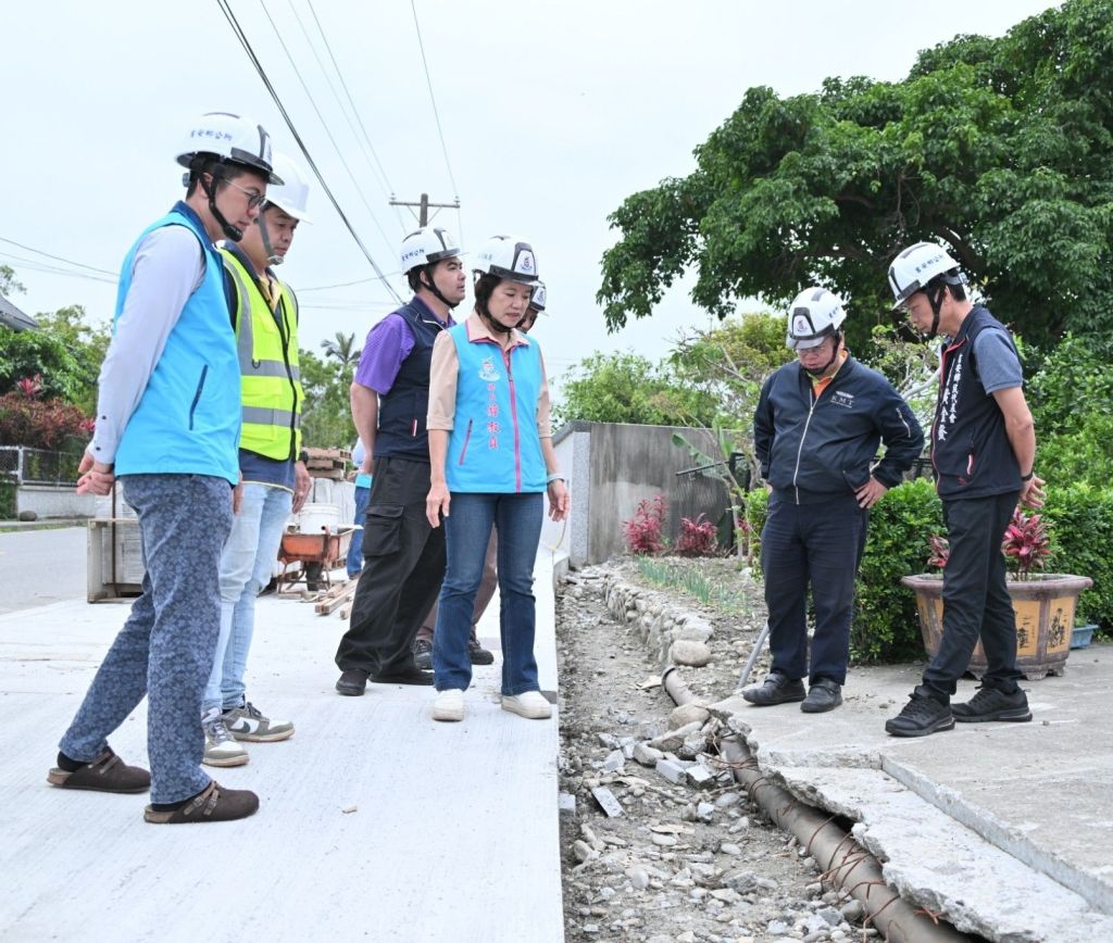 鄉長游淑貞陪同與副主席黃金發、代表詹益萬、村長石福春及校方、鄉親代表等人逐步檢視施工品質,鄰近96歲的呂姓農民夫婦熱情招呼並分享農作喜悅,稱許鄉公所與施工單位,不僅有效改善過去大雨淹漫路面問題,在工程結束前也細心恢復其農園圍籬設施,直向鄉長和施工人員表達謝意。