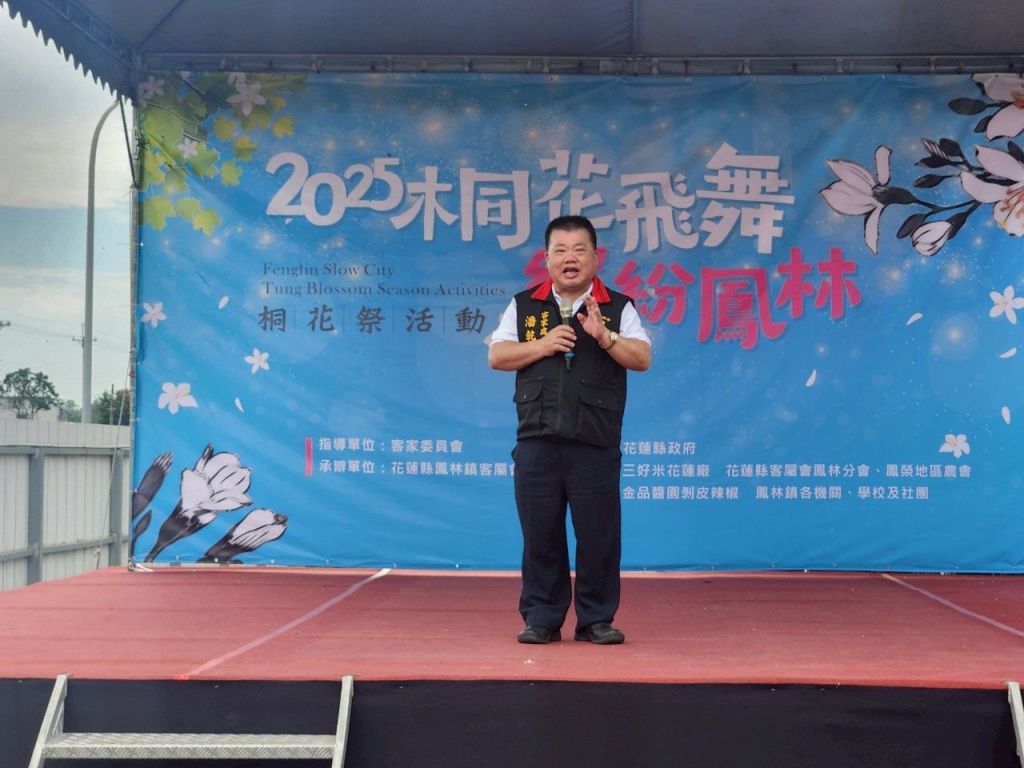 由客家委員會指導、花蓮縣政府主辦的2025「桐花飛舞‧繽紛鳳林」桐花祭活動於今(19)日假三好米花蓮廠熱鬧登場!本次特別與鳳林鎮客屬會共同合作,辦理「遶山花看桐花」健行活動,現場還有邀請在地學校及地方藝文團體舉辦「客家藝文饗宴」,歡迎全國鄉親假日一起到鳳林健行、賞桐花、聽音樂,感受花蓮客家及桐花之美。