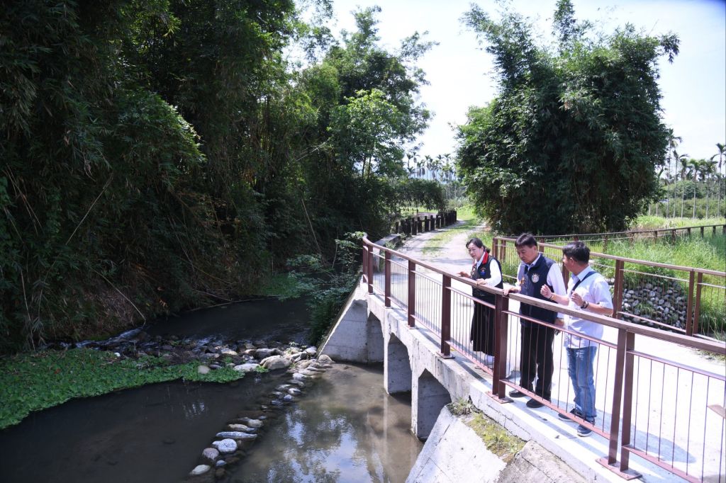 縣長徐榛蔚首先至「大華大全排水生態景觀池水環境改善工程」現場,關切目前最新工程進度及巡視周邊環境,以及是否落實規劃設計,同時釐清各工程權責單位,確立步道之維護管理,期許工程如期如質順利完工,確保排洪功能,透過加強工程建設為地方造福。徐榛蔚接續視察「無尾溪排水第三期治理工程(1K+456至1K+702段)進度,工程預計今(114)年完工,並新建源城四號橋、五號橋,增加拓寬通水斷面,大幅增加排水能力,為居民創造宜居友善的生活環境。
