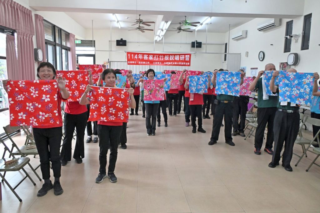 吉安鄉公所長期推廣客家文化和語言傳承,日前攜手花蓮縣吉安鄉山歌發展協會在稻香活動中心辦理114年客家打竹板說唱研習課程,透過專業老師引領將近40名鄉親認識客家傳統說唱藝術成果發表會,為期兩個半月讓鄉親可以輕鬆學習、快樂打竹板說唱,游淑貞鄉長前往同享鄉親們的喜悅,鼓勵銀髮樂活說唱歌謠,與社區友人說唱客語、打竹板,不僅增添生活趣味,也傳承多元族群共榮文化。
