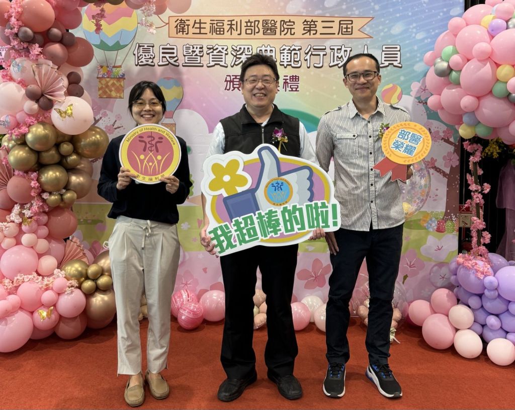 衛生福利部第三屆「優良暨資深典範行政人員」獲獎名單日前揭曉,玉里醫院三位優秀同仁脫穎而出,分別為資訊室彭元村主任、醫務行政室陳盈曳主任以及人事室陳省儒科員。三人在行政工作中展現高度責任感與專業貢獻,獲得肯定與表揚,亦為全院同仁樹立學習楷模,讓玉醫展現了不僅是在精神醫療的奉獻與專業,後勤也足以作為優秀表率。
