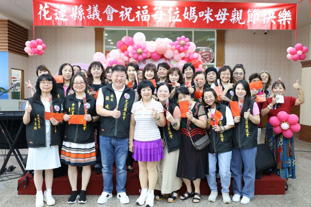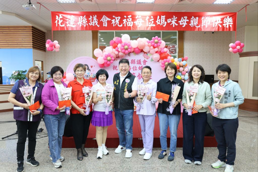 花蓮縣議會今6日中午在議會會館舉辦114年母親節慶祝餐敘,議長張峻特別致贈議會的女性議員及女性員工母親節蛋糕、禮券及康乃馨花束,現場女性同仁每位媽媽都笑顏逐開,藏不住的喜悅溢於言表,全場隨著表演樂曲聲搖擺身體,並隨著音樂節奏,以掌聲呼應節奏,當全場齊喊母親節快樂時,全場媽媽瞬間心都被融化了。