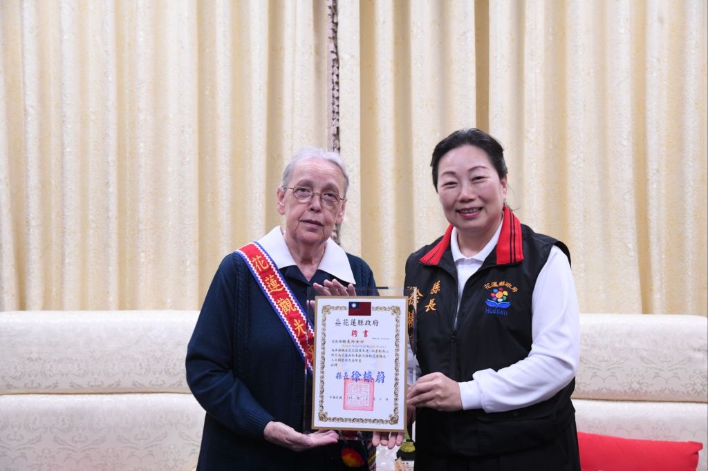 花蓮畢士大教養院前任董事長德國籍宣教士顧美玲昨(6)日拜會花蓮縣政府,縣長徐榛蔚特別授證宣教士顧美玲為「花蓮觀光文化推廣大使」,一起攜手為推動花蓮觀光努力,歡迎來自各地的國際友人蒞臨花蓮,展現花蓮溫暖、友善的城市魅力。