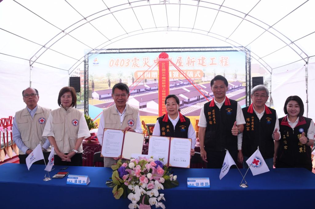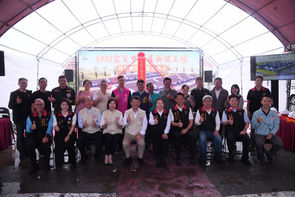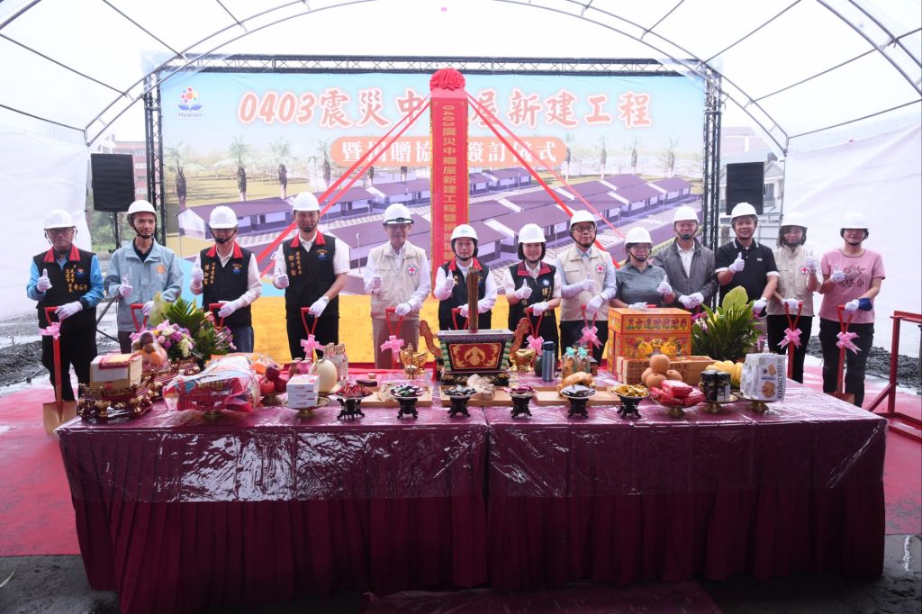 花蓮縣政府今(7)日舉行「0403震災中繼屋新建工程動土暨捐贈簽訂儀式」,由縣長徐榛蔚親自主持,並與中華民國紅十字會簽署2,800萬元捐贈儀式。徐縣長偕紅十字會會長潘維大及與會貴賓焚香祈福、持鏟動土,祈求新建工程圓滿順利,場面隆重。