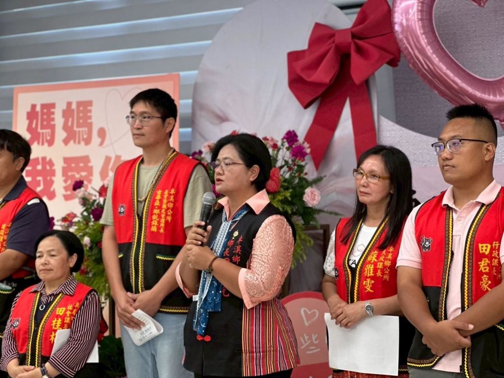 鄉長田桂花與公所主管用歌聲獻唱「媽媽的喜歡」,向與會所有母親深深表達感謝母親們每日辛勞、無微不至的照顧家人們的生活起居,母親節前夕,提前祝福-母親節快樂!希望透過此一活動的舉辦,讓平時為社會熱心公益、熱情奉獻的母親們接受表揚,發揚互助互愛美德,共建溫馨祥和的社會。