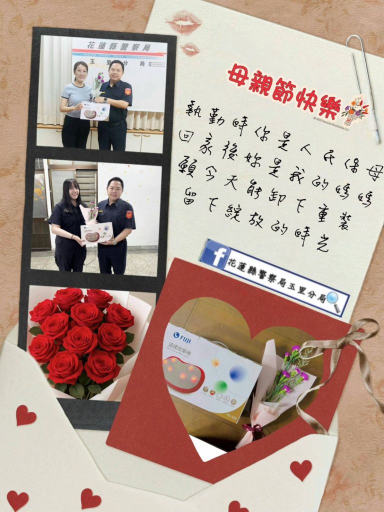隨著五月花香悄然綻放,花蓮縣警察局玉里分局也瀰漫著溫馨與感恩的氣息,為迎接母親節的到來,分局長黃清暉一早特別準備實用又暖心的「多功能溫揉按摩機」,並親手送上一束玫瑰花,向女性同仁獻上最誠摯的祝福與感謝。 這個母親節禮物不僅造型輕巧可愛、攜帶方便,還結合深層揉捏與溫熱功能,可有效舒緩長時間執勤、久坐或操勞後所累積的肩頸與腰背壓力。對於平日需兼顧警政勤務與家庭照顧的女性同仁而言,是一份貼心又實用的療癒禮品。現場更有甫產後返崗的同仁感動表示:「分局長真的很用心,這份驚喜禮物送進心坎裡!」