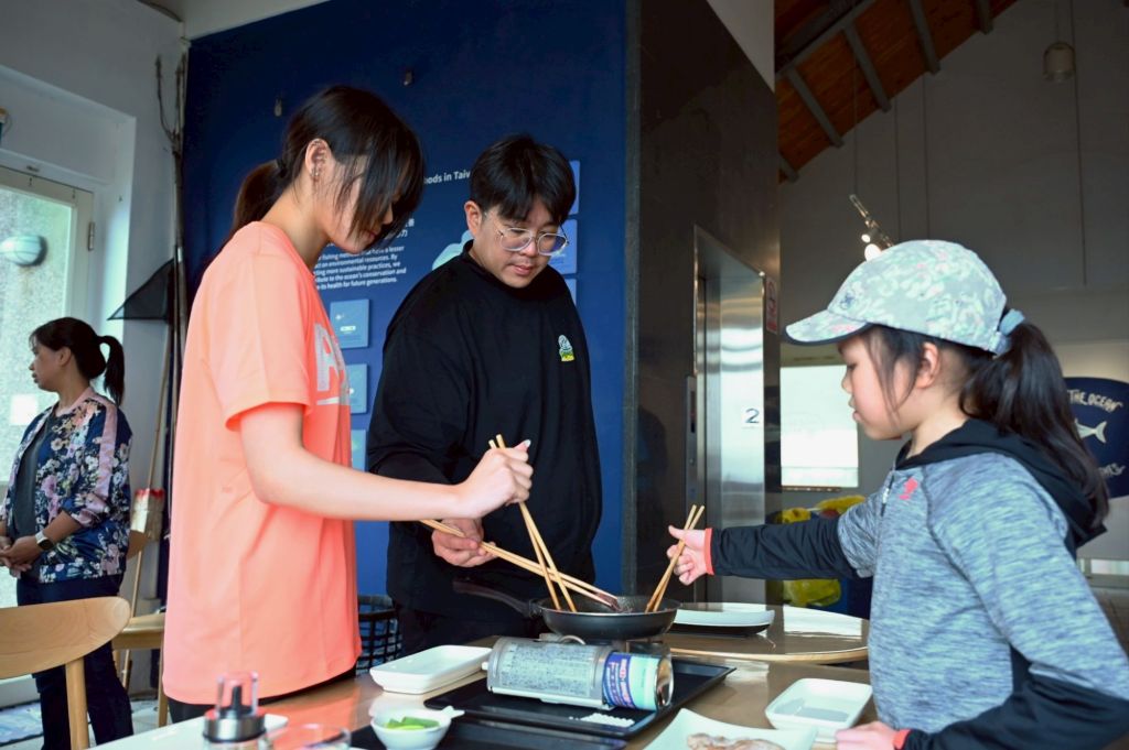「洄遊吧」不只是吃飯的地方,也是了解在地文化的一站。工作人員介紹了花蓮沿海的漁業發展,特別提到「定置漁場」這種傳統但智慧的捕魚方式,讓大家對海洋資源有了更多認識。現場還準備了當季最新鮮的鰹魚,讓參加者親自動手料理,在動手過程中體驗食材從產地到餐桌的過程,從而落實食魚教育的精神。