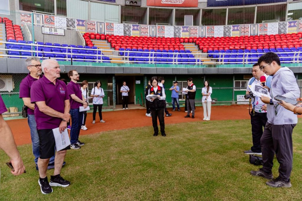 陪同下,於今(15)日抵達花蓮,展開為期三天的行程。代表花蓮縣長徐榛蔚歡迎ICG團隊的縣府教育處長翁書敏與ICG執行委員於下午展開各運動場館的現地勘查。