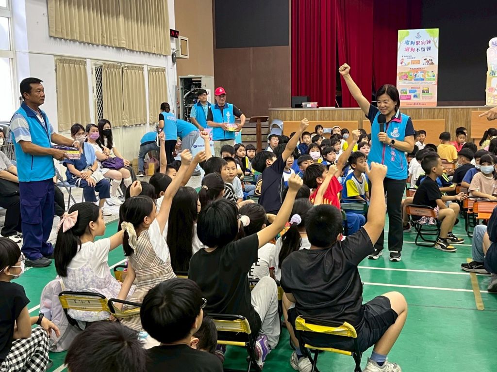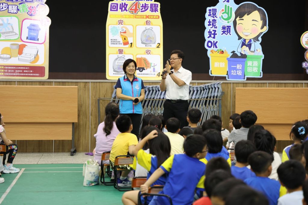 宣導尾聲,游淑貞鄉長更親自加碼主持問答環節,與學生互動提問:「椰子殼是廚餘還是垃圾?」引發現場小朋友踴躍舉手表態「是垃圾!」。游鄉長補充說明:「椰子殼很堅硬不易破碎,所以要當垃圾丟棄喔!」現場也有學生主動詢問殺蟲劑是否能回收,清潔隊則教導應先將內容物噴光,再依危險物品規定進行妥善分類,讓學生們收穫滿滿。