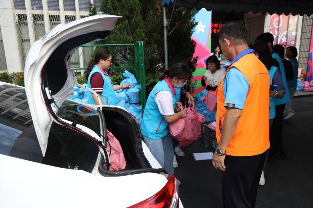 當日公所門口聚集了吉安、太昌、北昌、仁里、勝安、南宜昌、光華、稻香八個巡守分隊,分隊長們特別換上象徵守護與力量的「超人服」,以行動展現關懷精神。他們將物資分別搬上車,並逐一確認配送名單,確保每一位長者都能收到愛心關懷物資,圓滿完成這項溫馨的任務。巡守隊大隊長詹維明在隊員出發前,率領大家齊聲高喊口號,鼓舞士氣,也展現巡守隊「有情有義、無怨無悔、任勞任怨、有始有終」的使命感與團隊精神。