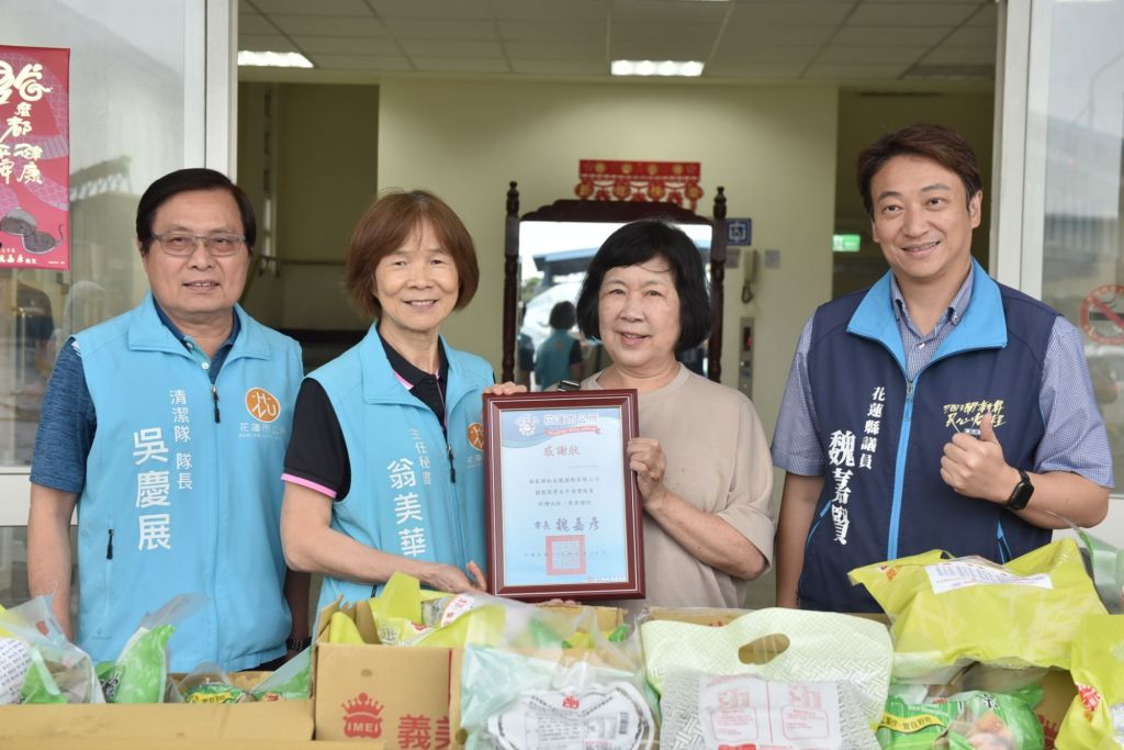 花蓮縣議員魏嘉賢感謝松成號長期以來對基層人員的關心,也感謝花蓮市公所清潔隊員們平日在第一線為民眾維護家園環境,他說,每逢連假期間,清潔隊員依舊堅守崗位為民眾服務,希望大家給予清潔隊更多的鼓勵,也祝福所有隊員端午佳節愉快且平安。